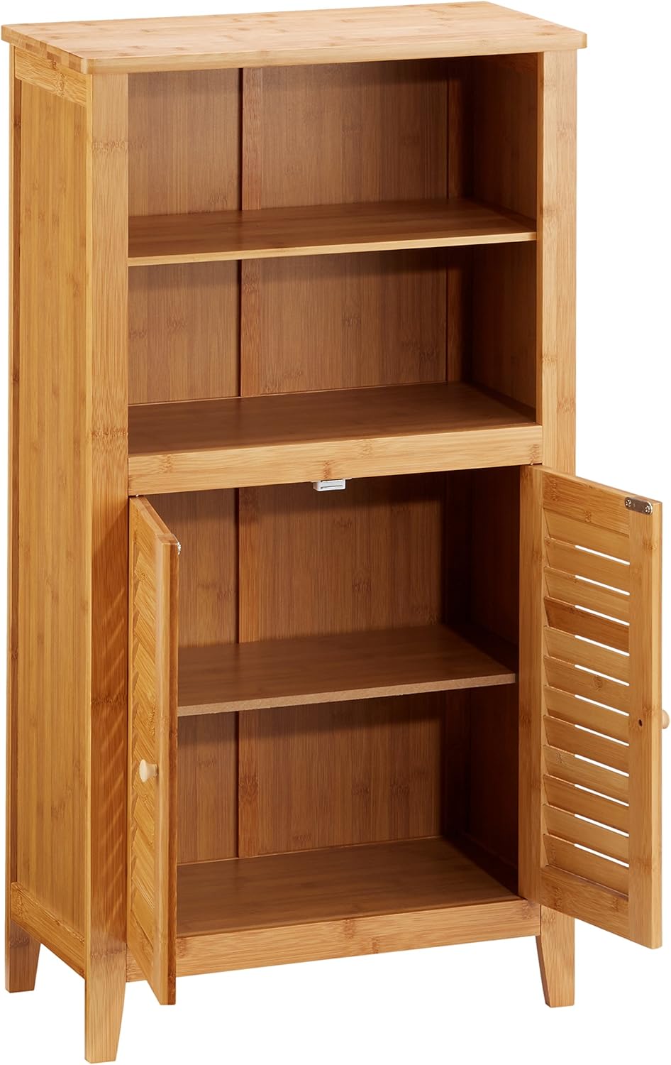 Relaxdays Badregal Bambus Mit 5 Ablageflachen Hxbxt 140x36 5x33 Cm Praktisches Holzregal Mit Mehreren Ebenen Und Schrankteil Mit Magnetischem Verschluss Mit Stauraum Fur Bad Und Wohnzimmer Natur Amazon De Kuche Haushalt Wohnen
